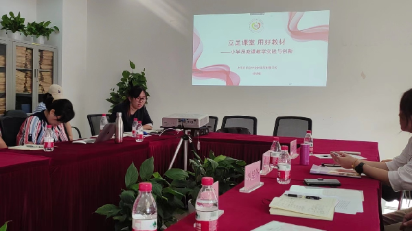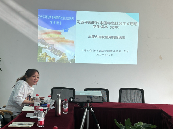 随后,我校附属学校小学思政课教师杨晓敏介绍了小学思政课的教学目标与任务,强调立足课堂、用好教材。初中思政课教师肖洁介绍了《习近平新时代中国特色社会主义思想读本》的设计思路,以及如何融合《道德与法治》教学。