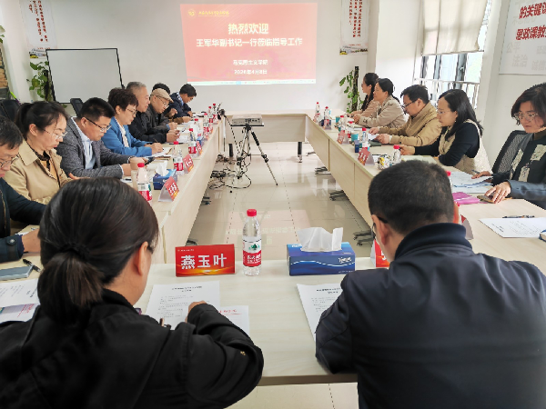 王军华对学院近年来取得的工作成绩给予充分肯定,并就下一步工作提出明确要求:一要紧跟数字化改革,提升教师数字教学、理论研究与实践育人能力;二要立足学生需求,创新教学方式,增强学生的内驱力;三要严守政治红线,坚守意识形态阵地,确保课堂安全。教务处相关领导与学院领导班子开展深入座谈交流,明确深化课程思政建设等重点工作的协同任务。