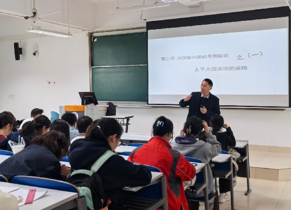 刘魁教授以“AI赋能中国近现代史纲要”为核心主题,选取了课程第二章“不同社会力量对国家出路的早期探索”中的第一节“太平天国运动的起落”作为教学内容。刘教授不仅深入剖析了历史脉络,更将AI技术与历史教学进行了深度融合。在课堂上,他引导学生运用历史唯物主义的基本观点,借助AI工具分析史料差异背后的深层原因,不仅增强了课堂的趣味性与互动性,更在潜移默化中帮助学生明确了中国近现代史的主题主线,有效提升了思政课的育人成效。