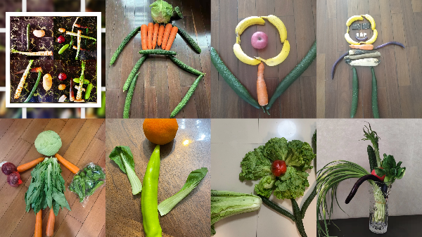 学院教职工通过蔬菜、水果等材料进行插花、拼图等,形成一幅幅精美的视觉艺术作品,希望能通过艺术语言传递正能量,静待疫情退散,迎接春暖花开。
